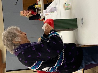 Yesterday's meeting was a many layered day of fun: first greetings all around and then TONS of good food. An excellent buffet with warm and hearty "mains" for a cold day and then plates of sweets to go with your tea and coffee. No one went away hungry.