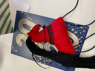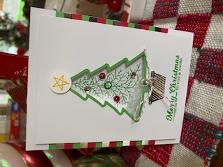 Thanks to everyone who helped put this fun day together! Bobbi had made cards for all of us. And looking forward to the new year, this cute bag was passed around to remind all that the next project will be making a bag. So: Merry Christmas to all and a Happy New Year.